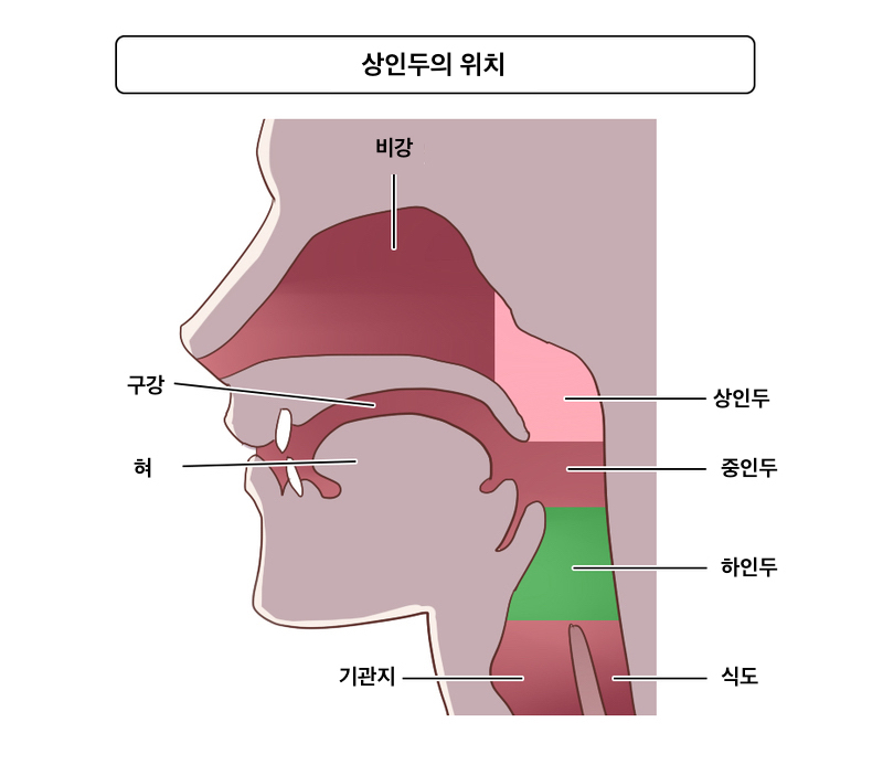 상인두는 코의 안쪽, 목의 위에 위치합니다.
